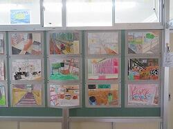 6年生の廊下に「わたしの大切な風景」という作品が掲示してありました。