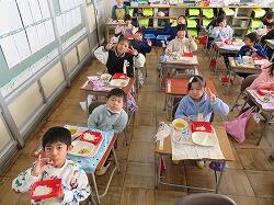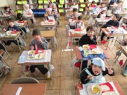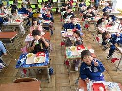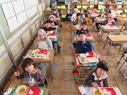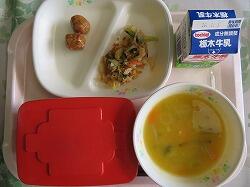 1222 給食 投稿日時 : 12:28 真岡東小システム管理者 今日の給食は「柚子おろし肉団子」「おかかあえ」「ほうとう風ひっつみ汁」でした。 冬至のため、柚子とカボチャを使った給食が出ました。 <1年1組> <1年2組>