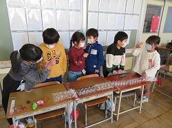 1年生は生活科「あきとなかよし」で、木の実などを使って、おもちゃつくりをしていました。