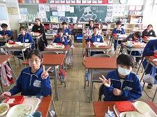0206 給食 投稿日時 : 14:00 真岡東小システム管理者 今日の給食は「ごはん」「ジャンボ肉しゅうまい2」「切干大根のごま酢あえ」「白菜の味噌汁」でした。 <6年1組> <6年2組> <6年3組>
