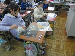 そこに、クレヨンで色を付けてティッシュなどでふき取ると、柔らかい作品が出来上がります。