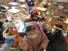 2年生が図工で「わっかで へんしん」に取り組んでいました。