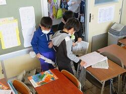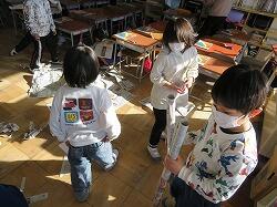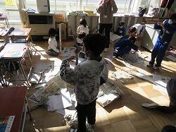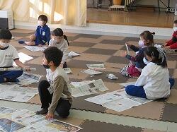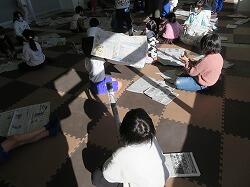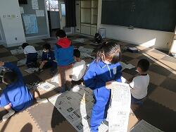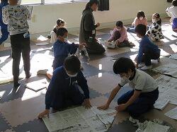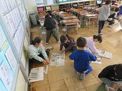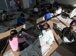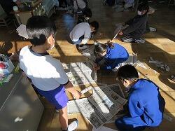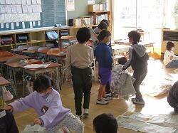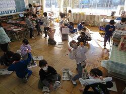 2年生が、図工「しんぶんしと なかよし」を行っていました。