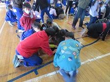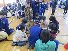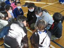 体育館に、ふれあい班ごとに集まってスタートしました。
