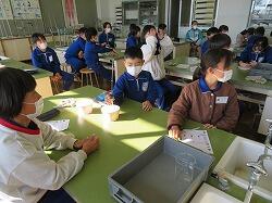 理科の「温度による水の体積の変化」について、実験をしていました。