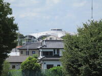 <東京電力真岡事務所の鉄塔>           <真岡市総合体育館>  <真岡市役所と建設中の新図書館>