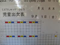 真岡東小学校では、2学期に向けての準備が各学年や学級で進んでいます。職員室前の廊下にある出欠黒板も、日付が始業式の行われる9月1日となっています。