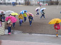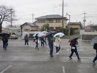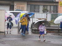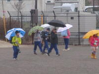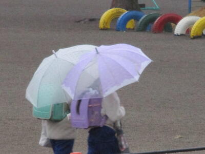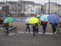 雨が降る中でも東っ子たちは、色とりどりの傘を差しながら今日も元気に登校してきました。