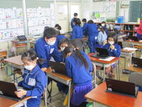 今日の3校時目の3年生の授業は国語でタブレットを使って、「世界の家のつくりについて調べよう」に関連した内容を発表できるように学習に取り組んでいました。