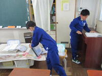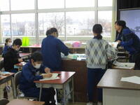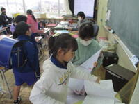 それぞれの学級ごとに学習したり、卒業式の様子の確認をしたり、卒業式の練習で使う資料のとじ込みをしたりしています。