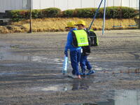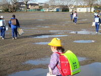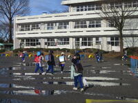 まだ校庭には水たまりがありますが、水たまりを避けながら「チャレンジ! 縄跳びカード!」を使って、レベルアップを目指して縄跳びをがんばっていました。