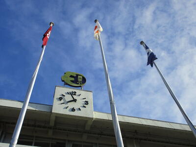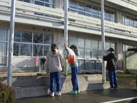 今日も当番の5年生が国旗、市旗、校旗を掲揚していました。