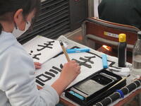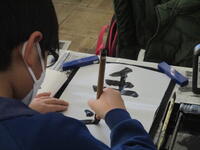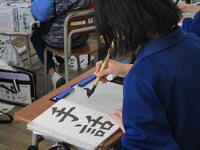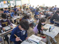 4年生の東っ子たちは集中して真剣に「手話」という文字を筆で書いていました。教室から子供たちの話し声や物音がしないほど、東っ子たちは集中して取り組んでいました。