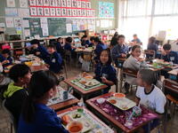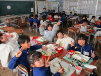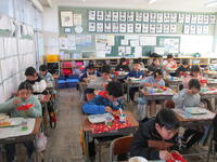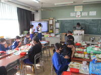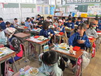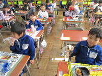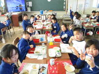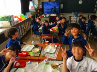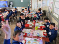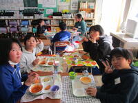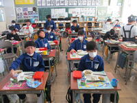 今日の給食も2年生の東っ子たちは、「きゅうしょくおいしーです!」などと言いながら、とてもおいしそうに食べていました。