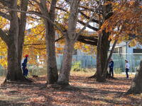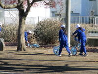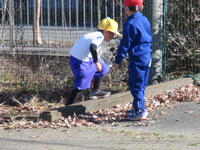 外掃除の東っ子たちは、今日も側溝の落ち葉さらいに一生懸命に取り組んでいました。