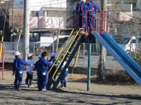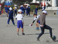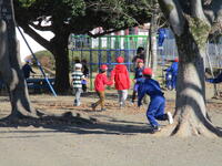 東っ子たちは、今日も元気に外に出て元気いっぱいに遊んでいます。先生方も外に出て、東っ子たちと一緒に遊んだり、東っ子たちの活動を見守ったりしています。