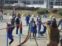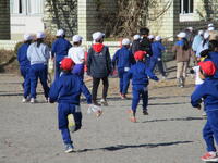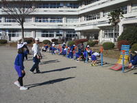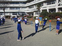 東っ子たちは、昼休みには今日も元気に外に出て遊んでいます。昼休みにも縄跳びをしている東っ子たちが多くなりました。真岡東小学校では今日も昼休みに先生方が外に出て、東っ子たちと一緒に遊んだり、東っ子たちの活動を見守ったりしています。教頭先生も低学年の東っ子たちに囲まれています。