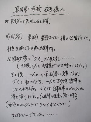 お名前などはありませんでしたが、東っ子の行いを見ていた地域の方からなのでしょうか。