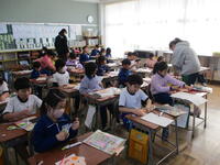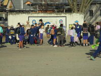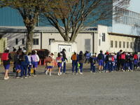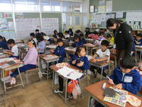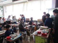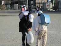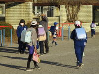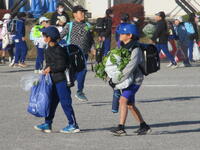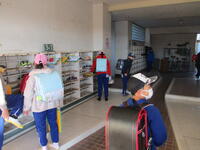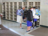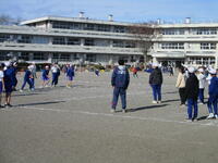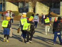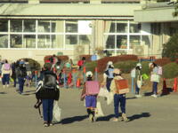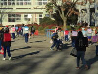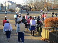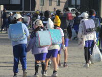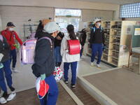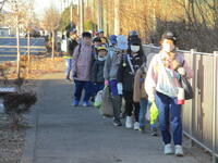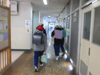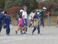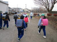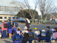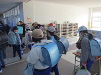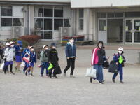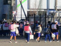 それぞれの班ごとに先生からお話を聞いて、「気を付けて帰りましょう!さようなら!」、「さようなら!」と大きな声であいさつをして下校して行きました。