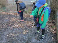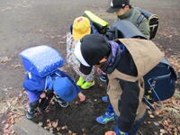 真岡東小学校の校庭の隅には霜柱が立っていました。霜柱を見付けた東っ子は、霜柱を手に取ったり、霜柱を踏んだりしていました。