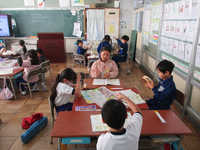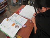 4年生の東っ子たちは、面積を求める公式を使いながら一生懸命に考えて問題を解いていました。