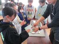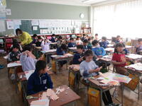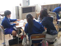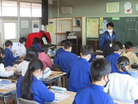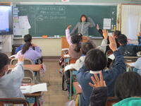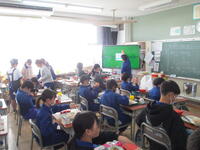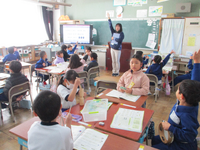 6年生の東っ子たちは、海外交流についての話を興味をもって熱心に聞いたり、積極的に会話してコミュニケーション図ったりしていました。