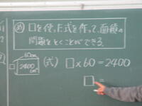 今日の学習は、「□を使った式を作って、面積の問題をとくことができる」でした。