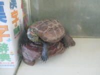 教室の後ろでは、カメが先生の説明や東っ子の発表を静かに聞いていました。