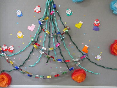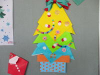 真岡東小学校の教室や廊下などには、クリスマスの時期の季節感たっぷりにいろいろ飾られています。