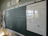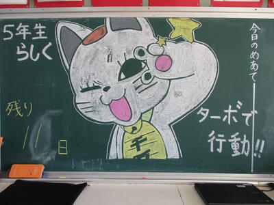 5年1組の背面黒板に描かれている「黒板アート」です。