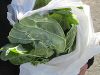 4年生の東っ子たちは、収穫した大きくて立派な白菜を抱えて下校して行きました。