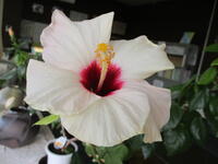今日はしばらくぶりに赤・白・黄色の3色の色鮮やかできれいなハイビスカスの花が同時に咲きました。
