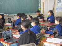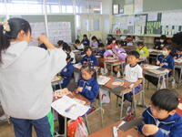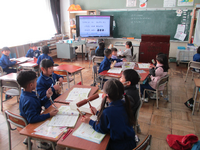 英語専科の先生とAETの先生による英語の授業でした。5年生の東っ子たちはタブレットを使いながら、栃木を英語で紹介する文章作りの課題に集中して取り組んでいました。