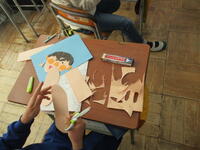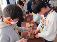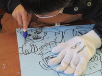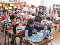 東っ子たちは、器用にハサミを使って紙を切ったり、切り取った紙を貼ったりしながら、「紙版画」作りに一生懸命に、そして楽しそうに取り組んでいました。