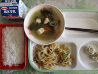 今日の真岡東小学校の給食は、肉しゅうまい、ごま酢あえ、豆腐とわかめのスープ、食パン・チョコ大豆、牛乳のメニューで、626Kcal(中学年)でした。
