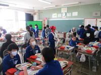 6年生の東っ子たちは、今日の給食も給食当番の東っ子たちを中心として協力しながら準備をしていたり、とてもおいしそうに給食を食べたりしていました。