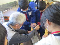 東門のそばでは、霜柱を見付けて手に取ったり、霜柱を踏んだりしている東っ子もいました。高学年昇降口では英語専科の先生と東っ子たちが大きな声で「グッドモーニング!」と英語であいさつをしています。