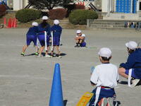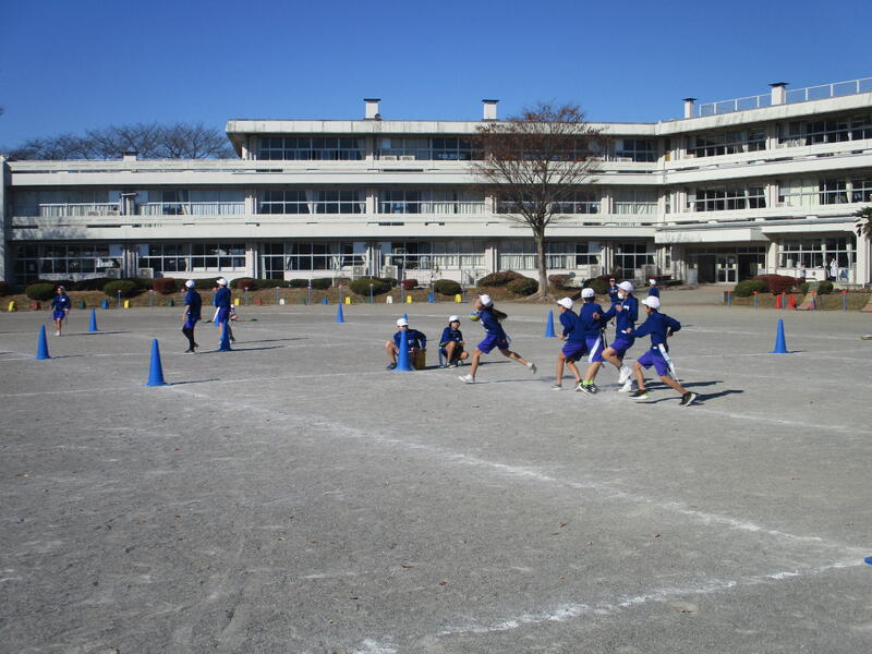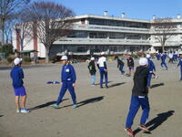 今日の3時間目は、2年2組は外に出て「 体育 」の授業をしていました。