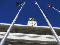 今日も係の東っ子が、「国旗、市旗、校旗」を降納しています。