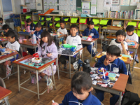 いろいろな材料を使って、1年生の東っ子たちがアイデアを凝らして工夫して作りました。