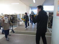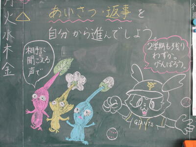 東っ子たちは寒さに負けずに今日も元気に大きな声で「おはようございまーす!」とあいさつしながら登校してきました。正門と東門では生活委員会の東っ子たちが「あいさつ強調週間」の活動にがんばって取り組んでいます。