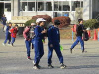 2学期最終日の今日も、東っ子たちの下校の時間になりました。東っ子たちは登下校班ごとに校庭に集合しました。