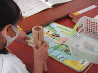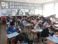 今日の3校時目は、2年生はそれぞれの教室で担任の先生と学習支援の先生による「 図工 」の授業でした。