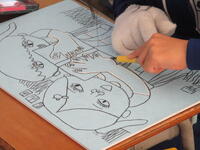 2年生の東っ子たちは、「 版画 」の下絵づくりに集中して、そしてとても楽しそうに取り組んでいました。いろいろな表情やポーズの下絵づくりが進んでいました。