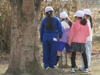 今朝もある先生のボンネットには霜が降りて不思議な模様になっていました。校庭にある桜の木は、すっかり葉を落として枝だけの姿になっていますが、その枝の先をよく見ると、早くも小さな小さな桜の蕾が付いていました。桜の木もすでに今から、来年の春に向けての準備を始めています。
