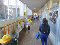 季節感も感じられて、1年生の教室の廊下が華やかになっています。