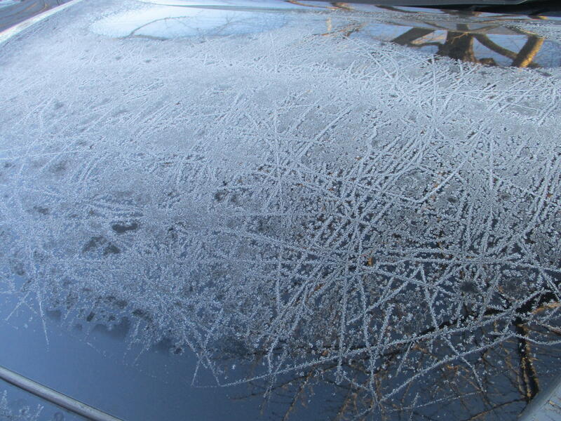 ある先生の車のボンネットは、霜が凍って不思議な模様になっていました。