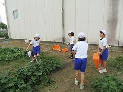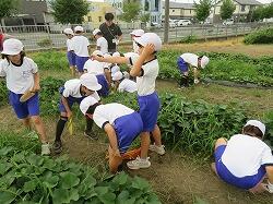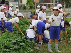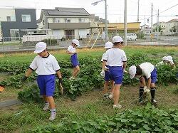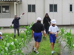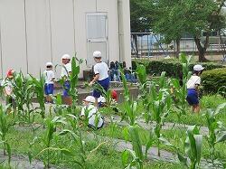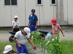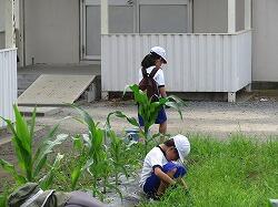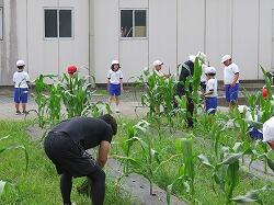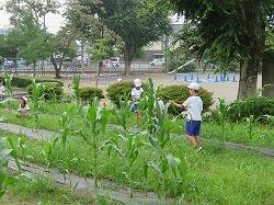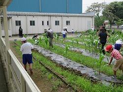 スマイル学級の子供たちが、自分たちが育てているポップコーン畑の除草作業を頑張りました。