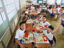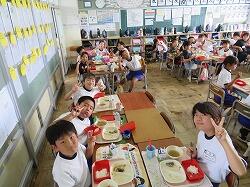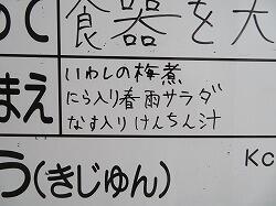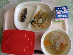 今日の給食は「いわしの梅煮」「にら入り春雨サラダ」「なす入りけんちん汁」でした。