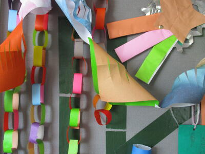 竹に見える部分は、よく見ると緑色のガムテープでできています。竹の節の部分などもとてもうまく表現されています。とてもすばらしいアイデアです。
